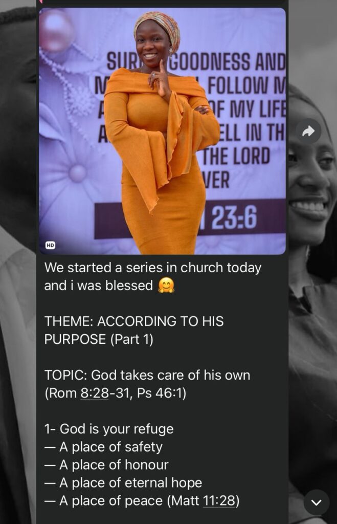 This includes a series of activities ranging from; a special quarterly session where seasoned women leaders and mentors share wisdom on faith, purpose, leadership, growth, financial literacy, emotional intelligence and holistic growth, to school outreaches dedicated to reaching the younger generation, listening to them and answering whatever questions they have as regards growth, healing and life as it comes etc. Our outreaches also extend to elderly and aged women in local communities. Here we provide support and listen to their shared stories for the wisdom they provide.